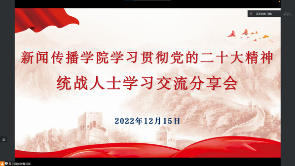 为深入学习宣传贯彻党的二十大精神,加强党的理论学习,进一步坚定信心、凝聚共识、奋勇前进,推动全院上下持续兴起学习宣传贯彻党的二十大精神热潮,365英国上市公司于12月15日14时在线上召开学习贯彻党的二十大精神统战人士学习交流分享会。公司全体教职工、各班员工代表共计50余人参加,会议由党总支书记李军主持。