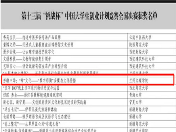近日,由共青团中央、教育部、中国科协、全国学联主办的第十三届“挑战杯”中国老员工创业计划竞赛评选结果揭晓,公司魏秀萍教授率师生团队创作的“芳馥中华:‘陶’文化——‘数字彩陶’多模态文化传播”项目从全国三千多所高校、142万名参赛选手、33万个创新创业项目中脱颖而出,荣获国家级铜奖,这是公司历史上首次获得创新创业大赛国家级奖项,实现了零的突破。