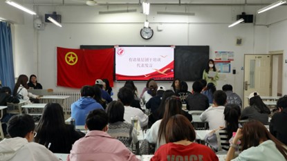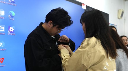 大会最后,由甘雯老师和关思宁老师为新团支部书记们佩戴团徽,增加仪式感,坚定团学干部理想信念,并对今后的团学工作开展进行了相关部署。
