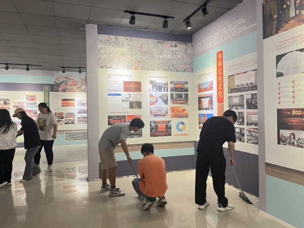 毕业生参观校史馆,重温公司办学70年多来的历史变革和发展,感受公司厚重的历史积淀、丰硕的办学成果和各项事业建设取得的成就。参观后,同学们分组打扫,每个人认真擦拭陈列柜、清扫地面,生怕漏过一个角落,留有一点污渍。