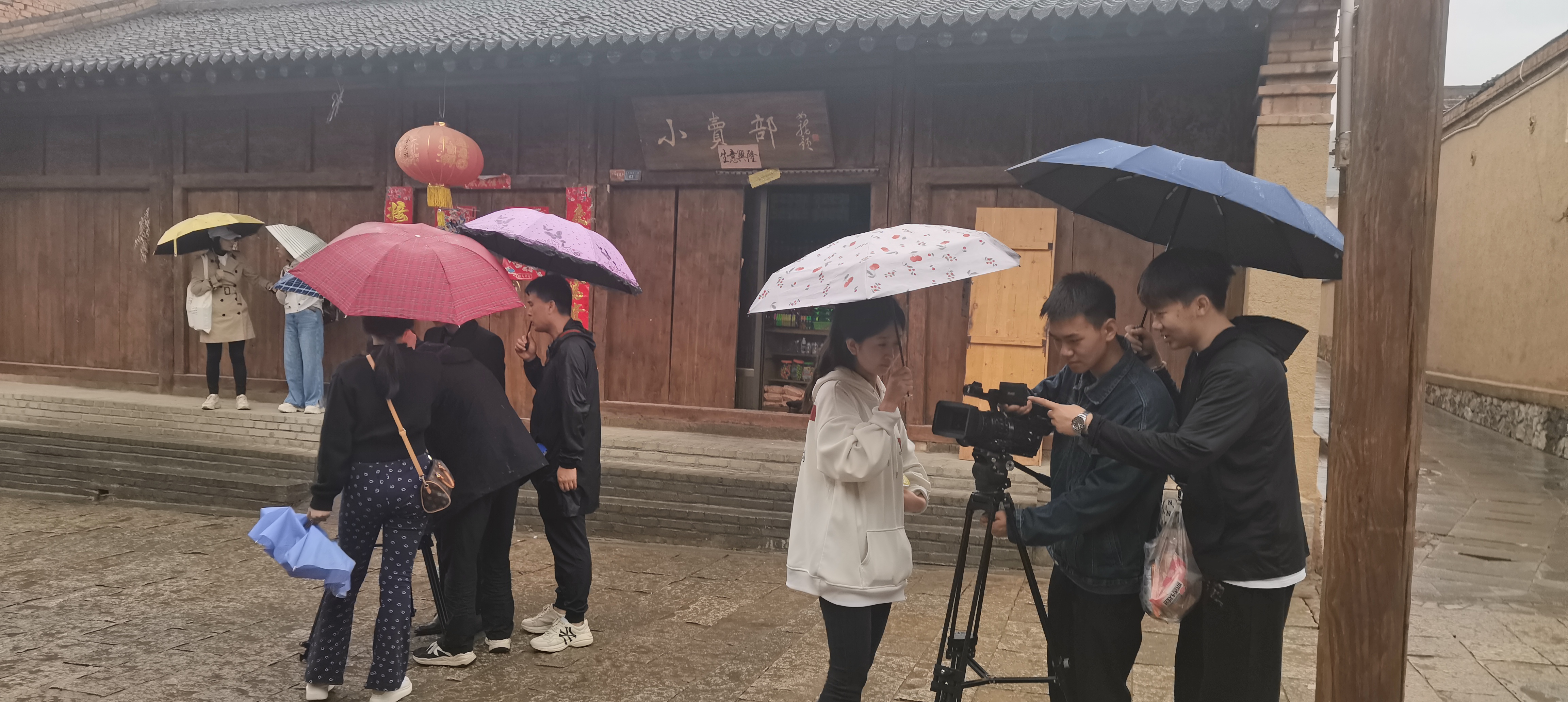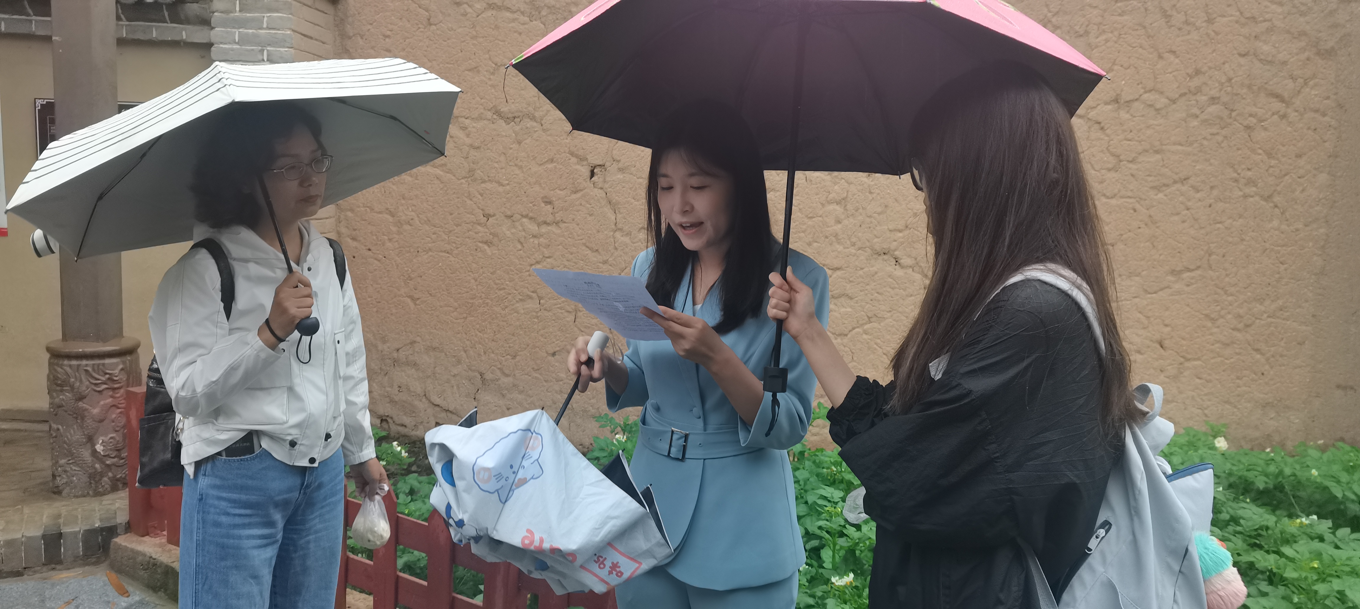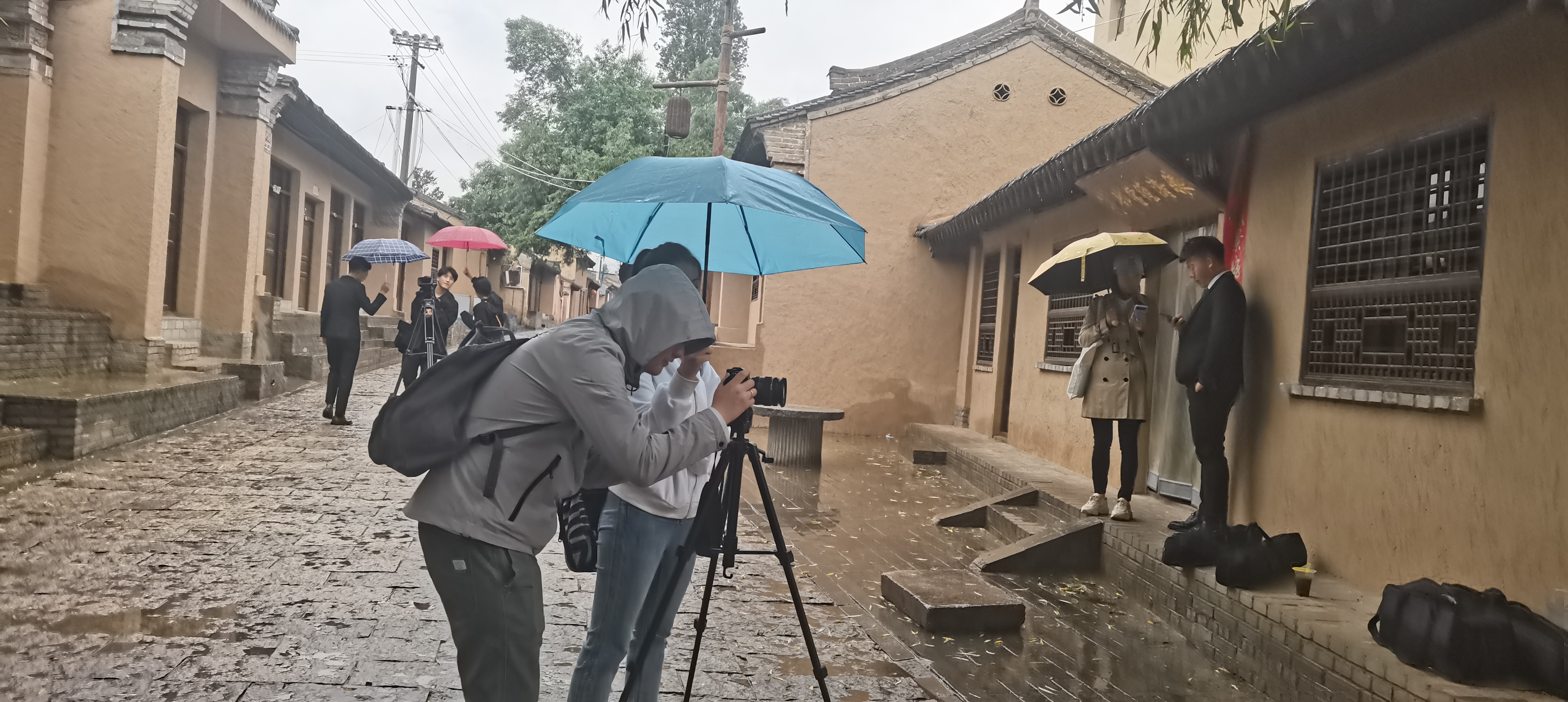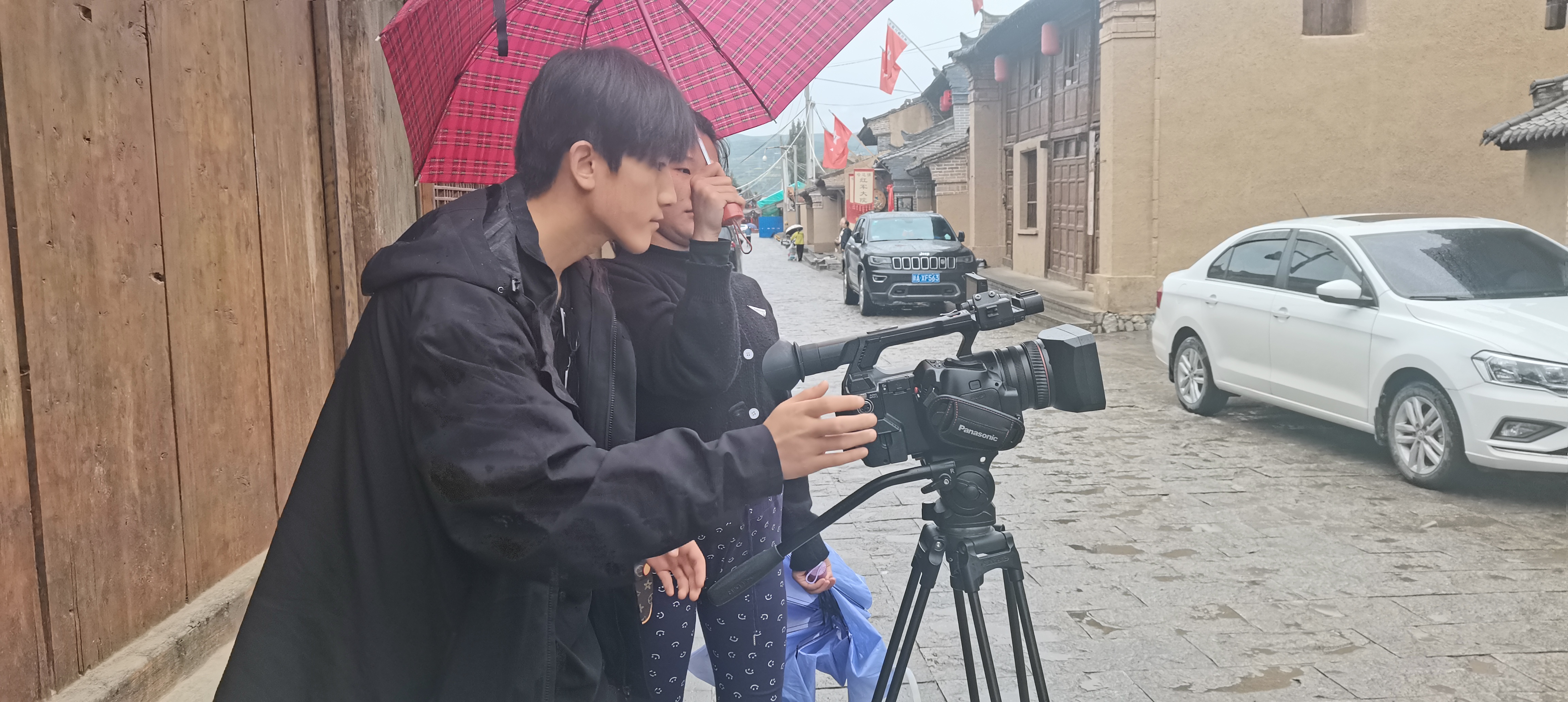 即使在拍摄过程中下了雨,但依旧阻挡不了老师同学们的拍摄热情,老师们说:当我们踏足在革命先辈们的长征路上,就要具备长征精神,不论是怎样的困难都要克服。