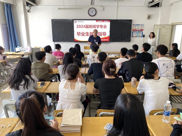 杨光老师为新闻学及播音与主持艺术专业同学们分析了当前就业形势,强调广大毕业生应根据自身的特点,积极转变就业观念,把握好就业机会、增强竞争择业和服务基层的观念;做好自身定位,先就业、再择业,以积极的态度面对就业,做足就业准备。接着,杨老师又和同学们积极互动,让同学们畅所欲言,并就同学们在就业方面的困惑,给予耐心的解答和帮助。
