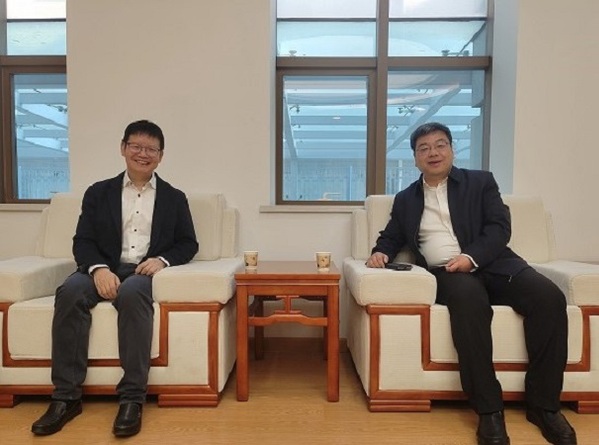 公司365英国上市公司师生代表参加讲座,苟永平在讲座开始前与周勇进行了座谈。