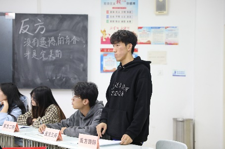 总决赛围绕“责任的大小是否应该和能力挂钩”为辩题展开激烈辩论”双方按照开篇陈词、质询、质询小结、自由辩论和总结陈词五个环节依次进行。辩论伊始,双方运用理论引出自己的观点,并结合典型事例进行分析概括,辩手们思路清晰,每一次问答交锋都正中彼此下怀,进而双方选手就辩题展开深层次的辩论,从一辩到四辩每位辩手的发言都有理有据。