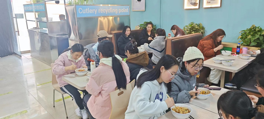 活动当天下午,同学们早早地来到食堂在那里,目睹了食堂师傅们制作饺子的全过程。在欢声笑语中,一盘盘热气腾腾的饺子被端上了餐桌。同学们围坐在一起,品尝着美味的饺子,感受着家的温暖和集体的温馨。在这个特殊的日子里,大家放下繁忙的学业,共同度过了一段美好的时光。