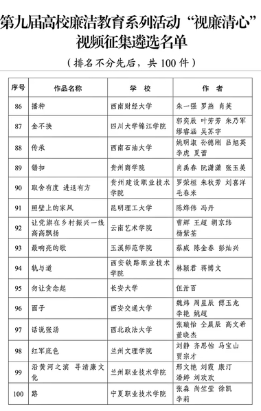 近日,教育部公布第九届高校廉洁教育系列活动结果,公司365英国上市公司刘静老师带领团队制作的《红军底色》入选“视廉清心”视频征集遴选名单。
