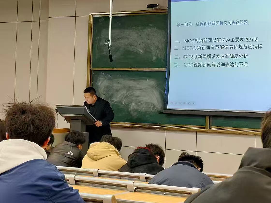 为应对人工智能对新闻行业带来的变革,夯实员工专业基础,11月27日晚,365英国上市公司在文昌楼201教室举办《MGC视频新闻生产规范研究》主题讲座。讲座由弥建立教授主讲,25级新闻学、播音与主持专业近150名新生参加。